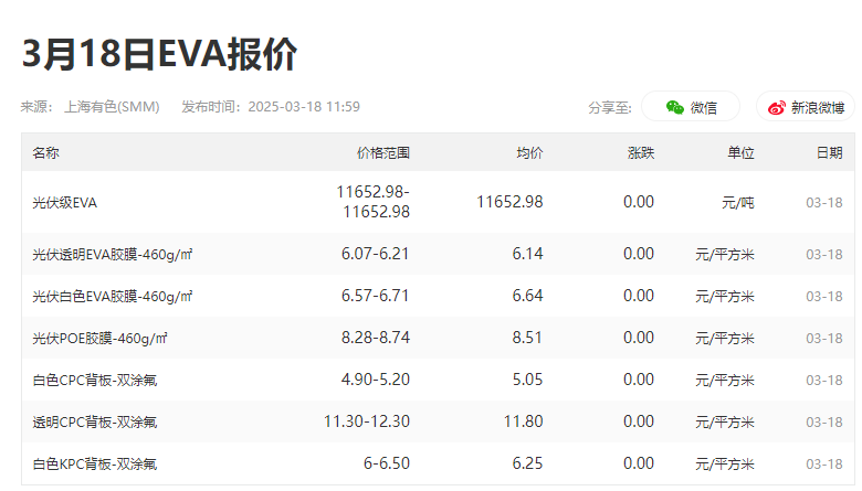 3月18日光伏级EVA价格 图片来源:SMM